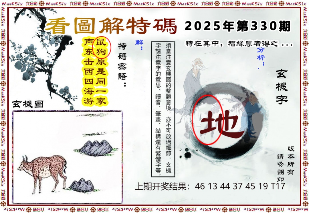 | 330期 | 〖猪狗鼠牛蛇猴〗实现梦想的强料 | 开:?00准 |
