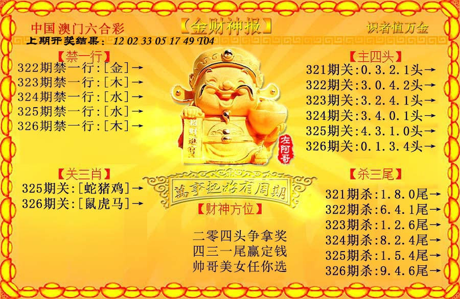 | 325期: 买啥都中 【男肖男肖男肖】开:虎04准 |