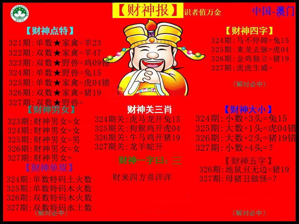 | 326期: 买啥都中 【家肖家肖家肖】开:?00准 |
