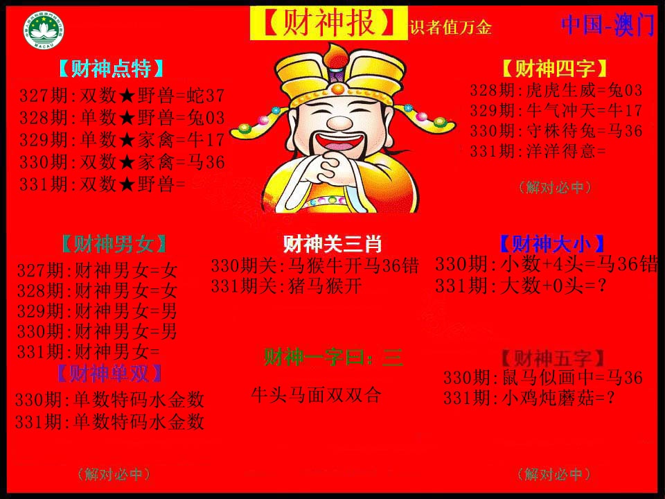 | 330期: 买啥都中 【天肖天肖天肖】开:?00准 |